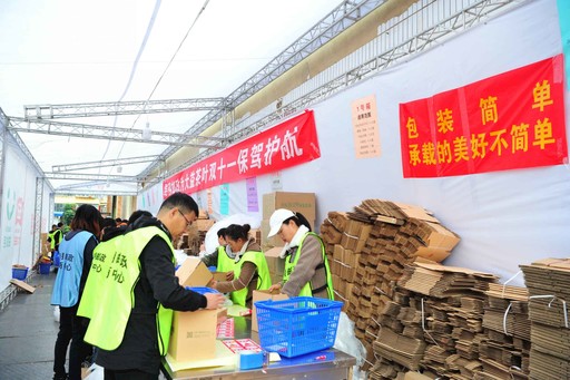 云南省大益普洱茶一直以来是“双11”天猫茶行业的“销量王”。经过4年的深度合作,今年“双11”,昆明市邮政分公司成了大益普洱茶唯一快递服务商。截至11月11日10点30分,大益普洱茶订单量超过12万件。图为昆明市分公司员工为客户提供分拣、理货、打包、运输等全环节服务。□云南记者 杨晓颖  摄影报道