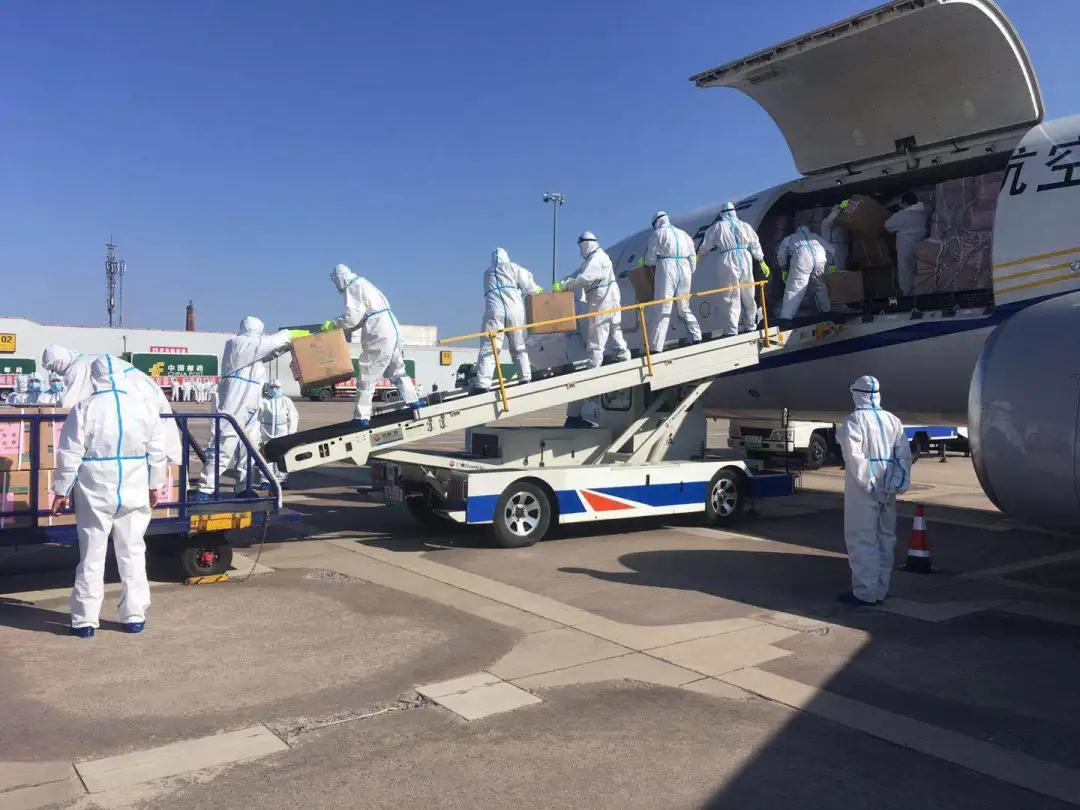 湖北省捐赠物资装上邮航包机。