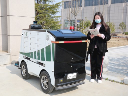 邮政无人设备在疫情期间的投递工作中发挥了大用处。龙景君 程雨 摄