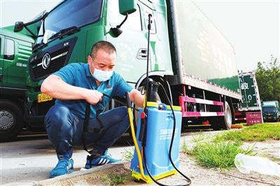 近期,北京进入了高温模式,刘春喜每次按照标准流程完成车辆消毒工作后,都会热得满头大汗。□康涛 摄