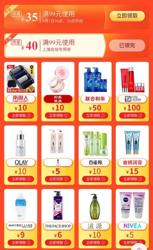 可领取50减1030减5专场优惠券