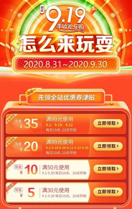 • 燃爆9月!邮政919丰收欢乐购让你连嗨1个月!