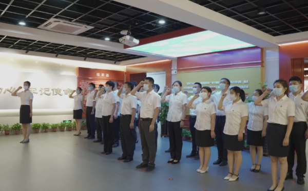 随后,大家面向党旗,重温入党誓词,使全体党员干部重温入党初心,坚定了前行的脚步。参观结束后,邮政青年党员团员在企业职工食堂组织红歌联唱快闪活动,“祝葫芦岛邮政蒸蒸日上”的呼声响彻整个办公新楼!