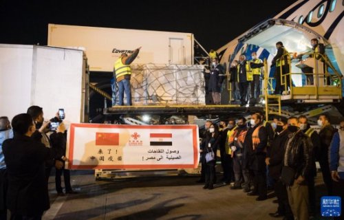 2021年2月23日,中国援助埃及的首批新冠疫苗抵达埃及开罗国际机场。新华社记者 邬惠我 摄
