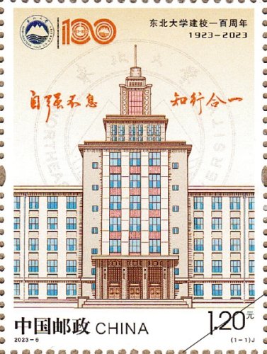 东北大学始建于1923年,是一所具有爱国主义光荣传统的大学。一百年来,东北大学始终遵循“教育英才”的办学宗旨,始终心系“国家事”、肩扛“国家责”,书写了波澜壮阔的创业史、奋斗史。中国邮政以这份方寸间的纪念献礼百年东大,展现了东大人“惟知行合一方为贵,惟自强不息方登高”的价值追求。东北大学党委书记熊晓梅表示:“中国邮政将《东北大学建校一百周年》纪念邮票列入国家2023年纪特邮票发行计划,这是对东北大学的厚爱和鼓励,是对百年东大的致敬和礼赞。‘方寸之间有乾坤’,校庆纪念邮票承载着百年东大‘自强不息、知行合一’的精神血脉,蕴含着百年学府的厚重底蕴和价值坐标,鼓舞激励着全体东大人在百年新征程上展现新气象、实现新作为。”