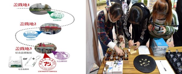 文创集市设立有声明信片打印机,学生将心仪照片打印到明信片上,记录祝福语录,并配套《发现辽宁之美集章本》和辽宁69个特色景区专属印章免费盖,刻印下辽东学院办校75周年最具意义的纪念。