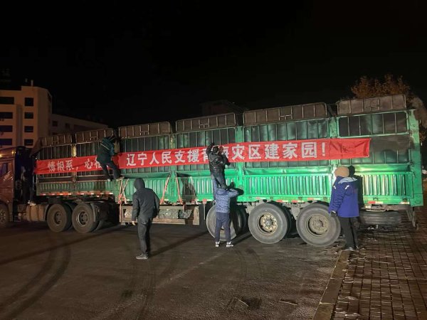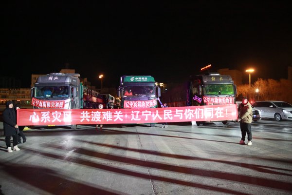 12月21日凌晨3点半,辽宁省抗震救灾物资搭载邮政车辆从葫芦岛市出发,将行驶2000余公里,星夜驰援甘肃、青海地震灾区。