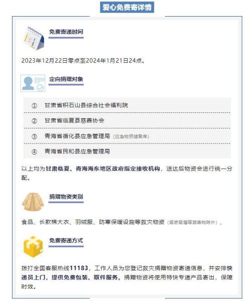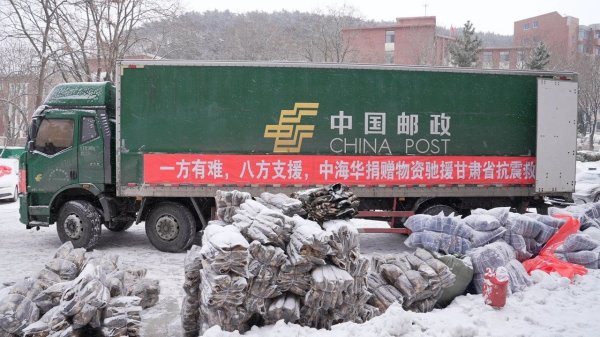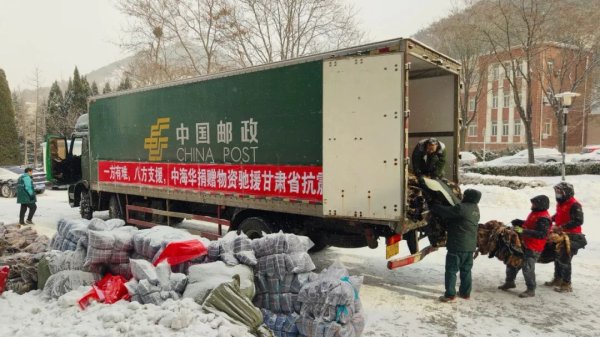 凌冽风雪中,大连邮政不辱使命,担当作为,第一时间冲在抗震救灾的最前线。在市文明办、团市委指导下,大连邮政联合大连市青年志愿者协会、大连市青少年发展基金会、大连市小善大爱公益服务中心一起将爱心物资驰援地震灾区。
