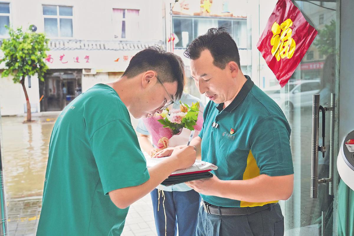 “您好!请问是杨同学吗?您的北京大学录取通知书到了……”日前,河南省商丘市邮政分公司揽投员乔金涛冒着暴雨将录取通知书送到家住周集镇周集村的考生杨同学的手中,这也是商丘市首封北京大学录取通知书。7月15日以来,商丘市连降暴雨,部分路段积水严重。为确保录取通知书能够第一时间送到考生手中,商丘市邮政分公司采用专人专投方式,冒雨投递。在实际投递过程中及时调整投递路线,尽可能减少因暴雨而增加的投递时间。