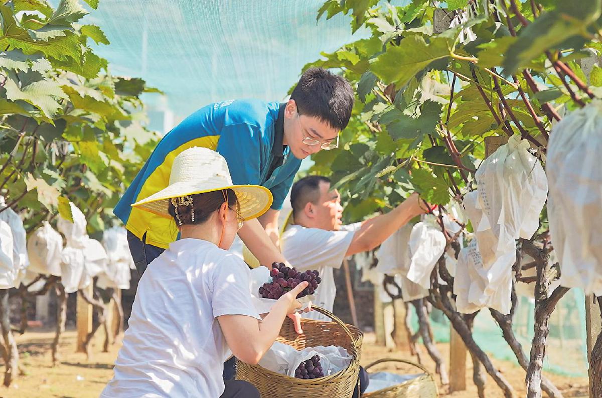 日前,湖北省荆门市邮政分公司助农服务队来到漳河镇京河葡萄种植基地,帮助一位身体有残疾的种植者采摘、装箱、打包、运输葡萄,并通过“基地直播+社区团购”的方式,助销葡萄1300多斤。据悉,帮扶对象刘师傅是一位50多岁的残疾人,因身体活动受限,自家种植的葡萄出现滞销。荆门市分公司通过走访了解到这一情况后及时伸出援助之手,解了刘师傅的燃眉之急,受到当地群众的好评。