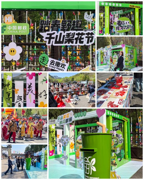 活动展区将梨花元素巧妙融合,营造出一个既古典又现代的美感空间。为提升游客的参与度与体验感,现场还特别展出《中国千山》特种邮票,首发梨花节主题邮戳卡、以及涵盖地域文化的百种特色印章。游客们在这里不仅能够寄递明信片、加盖特色邮戳,还能通过沉浸式体验,感受“一封信的旅行”与“一座山的故事”之间的浪漫联动。