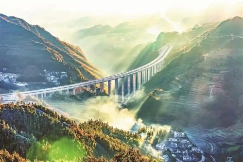 邮储银行贵州省分行支持建设的盘兴高速背武甲特大桥。