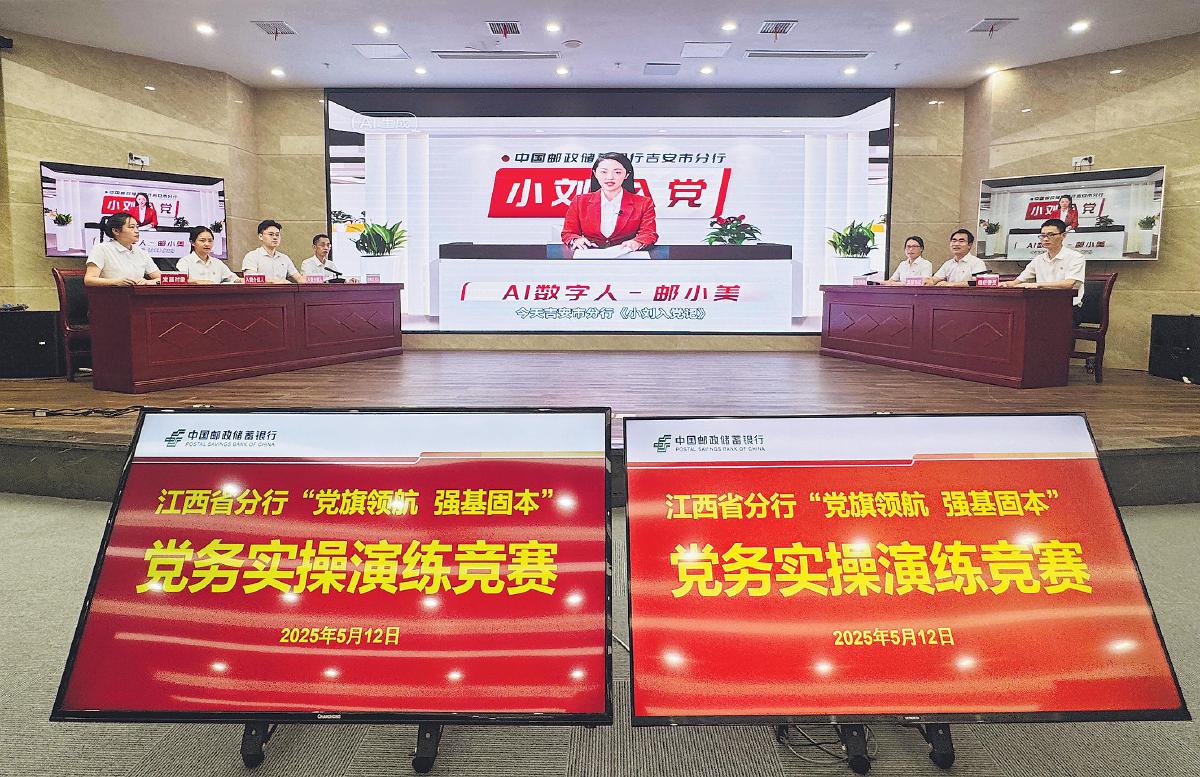 5月12日,在邮储银行江西省分行“党旗领航 强基固本”党务实操现场演练竞赛中,吉安市分行创新启用AI数字人“邮小帅”“邮小美”,与7名演职人员协同配合,以智能交互形式精准解读发展党员全流程,将规范化操作转化为可视化、场景化解说。