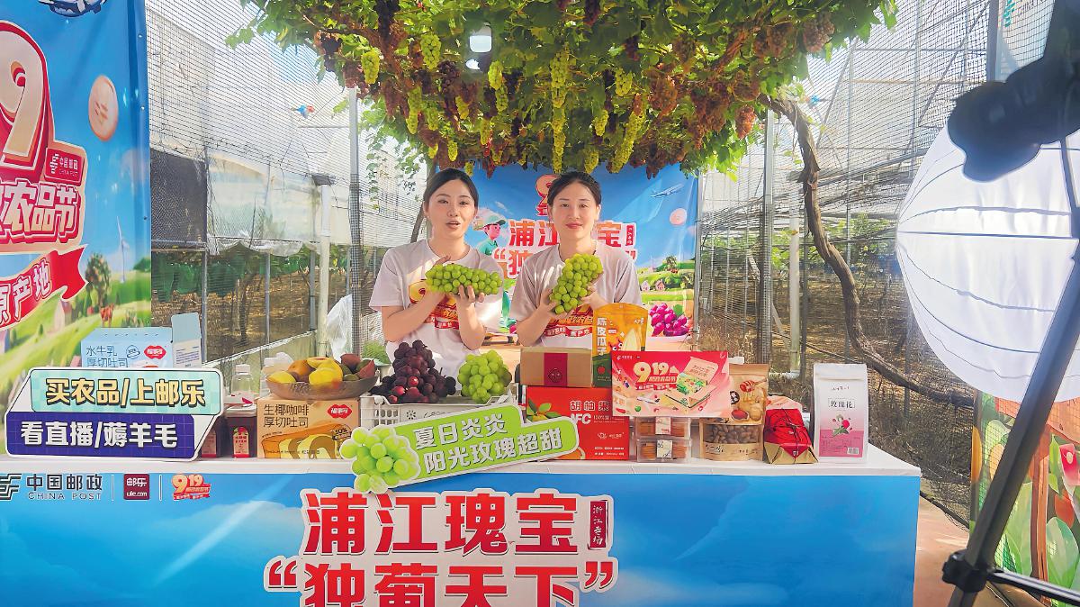 8月20日,浙江省金华市邮政分公司在浦江葡萄基地开展了一场“浦江瑰宝 独‘葡’天下”的溯源直播。此次直播凭借“原汁原味原产地”与寄递全程护航的品质承诺,赢得了较高人气,夺得当日浙江邮政农品节专场直播的销售冠军。